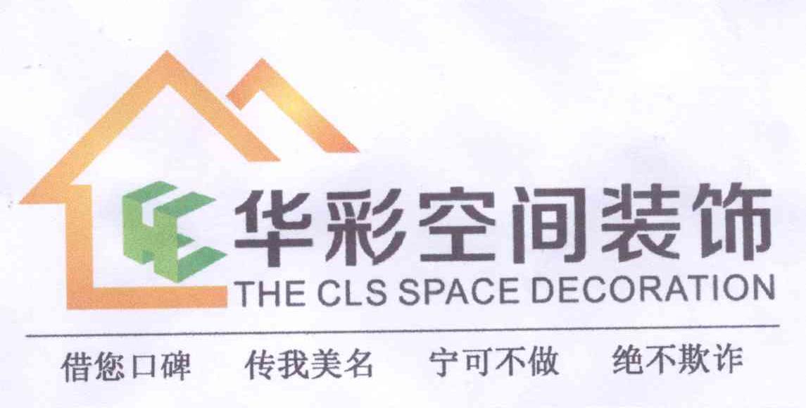 商标名称:华彩空间建筑 借您口碑 传我美名 宁可不做 绝不欺诈 THE CLS SPACE DECORATION