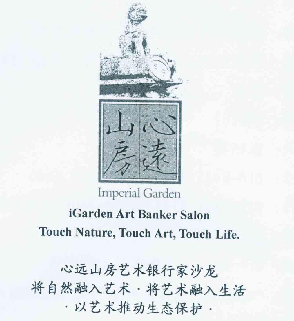 商标名称:心远山房艺术银行家沙龙 将自然融入艺术·将艺术融入生活·以艺术推动生态保护· IMPERIAL GARDEN IGARDEN ART BANKER SALON TOUCH NATURE,TOUCH ART,TOUCH LIFE.