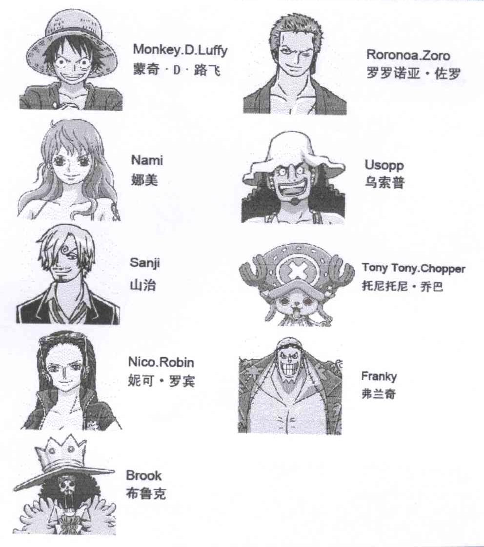 商标名称:蒙奇·D·路飞 MONKEY D LUFFY RORONOA ZORO SANJI USOPP NAMI FRANKY TONYTONY CHOPPER BROOK NICO ROBIN