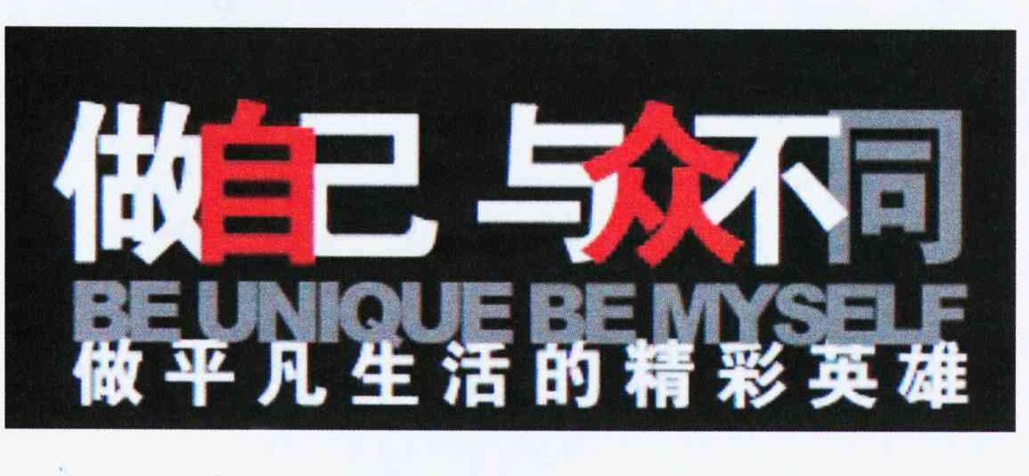 商标名称:做自己 与众不同 做平凡生活的精彩英雄 BE UNIQUE BE MYSELF