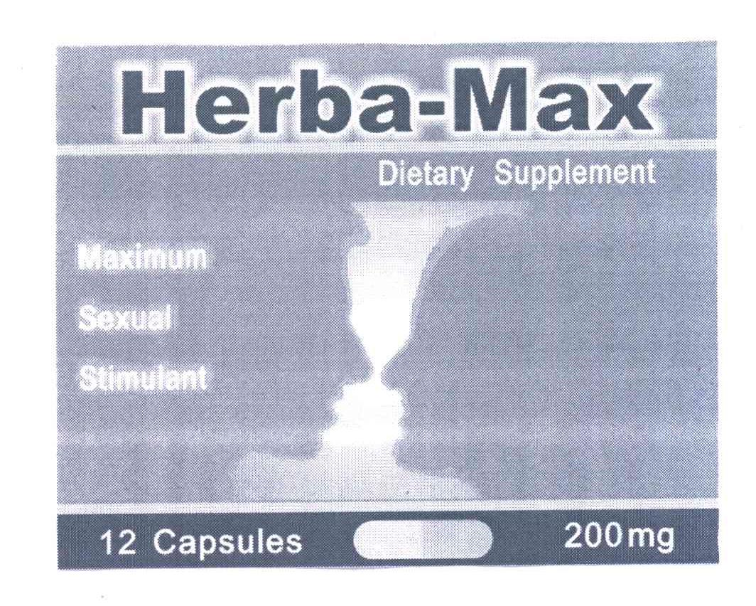 商标名称:HERBA MAX DIETARY SUPPLEMENT;12MAXIMUM 200SEXUAL STIMULANT;CAPSULES MG