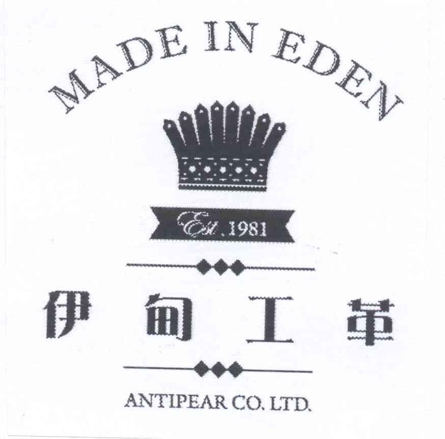 商标名称:伊甸工革 MADE IN EDEN EST.1981 ANTIPEAR CO.LTD.
