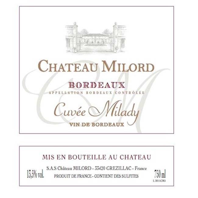 商标名称:CHATEAU MILORD BORDEAUX APPELLATION BORDEAUX CONTROLEE CUVEE MILADY VIN DE BORDEAUX