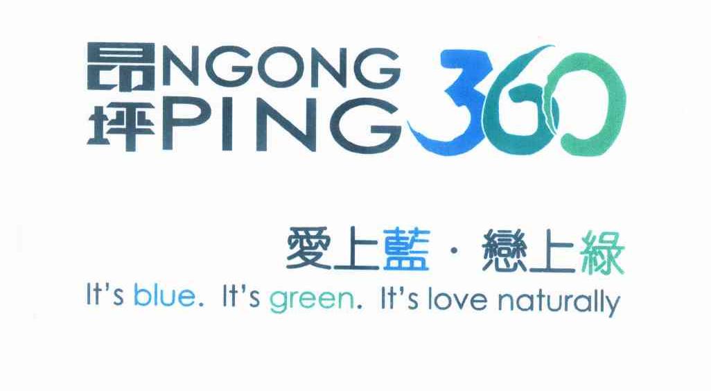 商标名称:昂坪 爱上蓝恋上绿 NGONGPING ITS BLUE ITS GREEN ITS LOVE NATURALLY 360