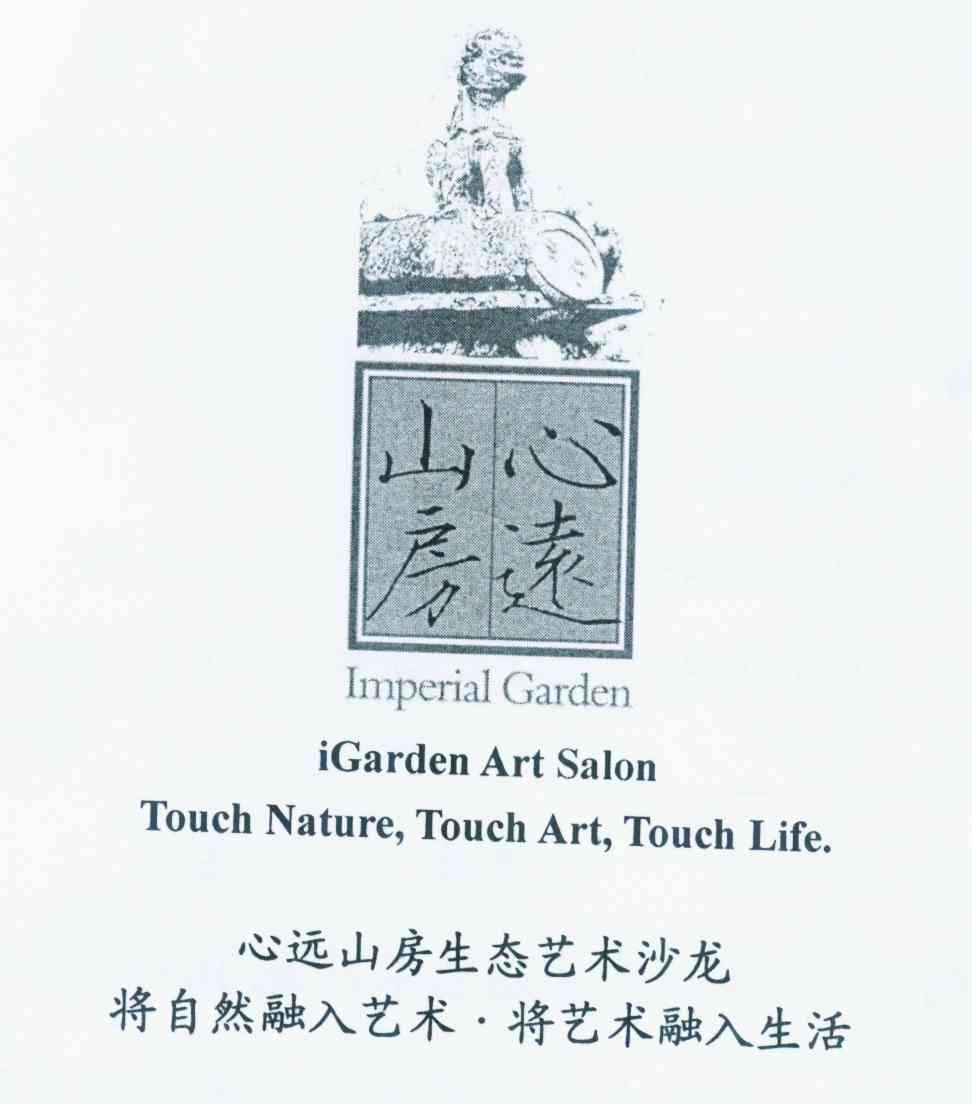 商标名称:心远山房生态艺术沙龙 将自然融入艺术·将艺术融入生活 IMPERIAL GARDEN IGARDEN ART SALON TOUCH NATURE,TOUCH ART,TOUCH LIFE.