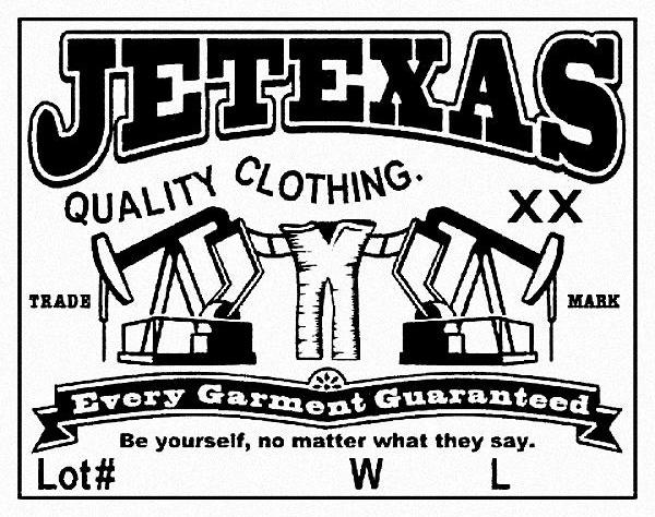 商标名称:JETEXAS QUALITY CLOTHING BE YOURSELF NO MATTER WHAT THEY SAY LOT EVERY GARMENT GUARANTEED XX WL
